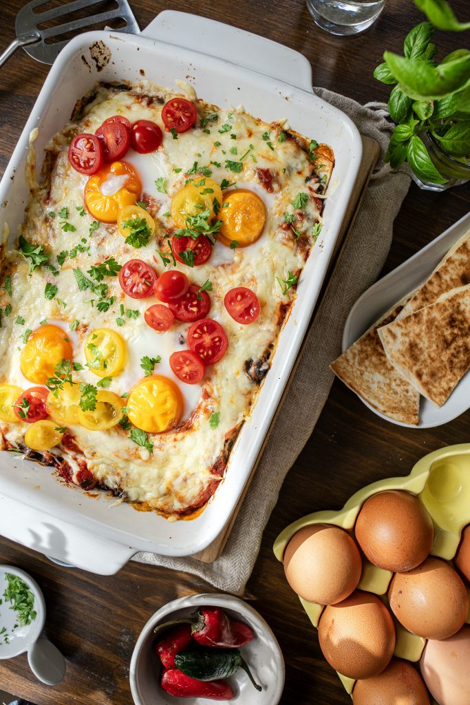 Ez a tepsiben sült, rakott huevos rancheros tulajdonképpen a reggeliből nőtte ki magát ebéddé. Réteges változat a klasszikus mexikói reggeli kényelmesebb, mégis látványos verziója – amolyan mexikói hangulatú lasagne, melyet Szotyi Creations készített el nekünk.