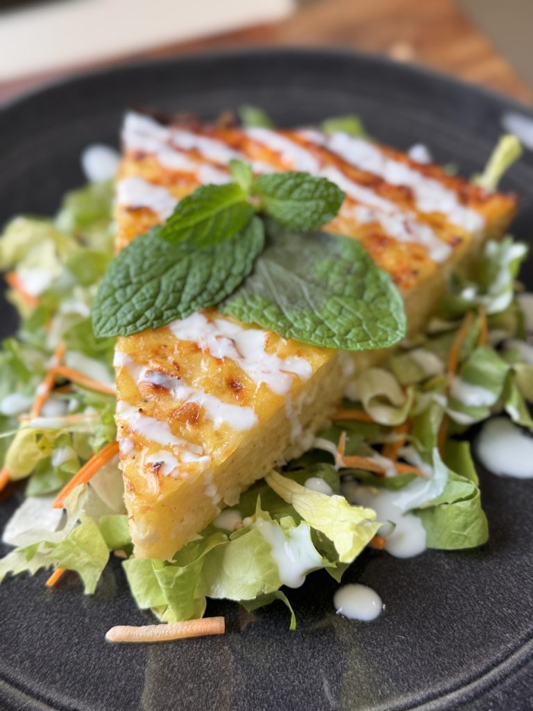 A patatnik egy hagyományos bolgár burgonyás étel, amely egyszerre ropogós kívülről és puha, ízes belülről. A durvára reszelt burgonya, a friss hagyma és a feta sajt harmonikus kombinációja adja jellegzetes ízét, amelyet a friss menta és a vaj tesz igazán különlegessé. Eredetileg Bulgária déli vidékeiről származik, ahol a helyi családok gyakran készítik egyszerű, mégis kiadós fogásként, akár reggelire, akár ebédre. A patatnik különlegessége, hogy a burgonya természetes íze mellett a sajt és a fűszerek finoman egészítik ki, így egy igazán laktató, mégis könnyed ételt kapunk, amit friss salátával és joghurtos öntettel tálalva a legjobb élvezni, pont ahogy Gasztrogengszter is teszi.